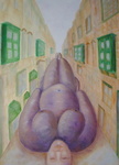2004Moeder Aarde ligt in een typisch Maltezer straatje. De groene erkertjes zie je veel op Malta. Verder is het symbolisch. Moeder Aarde is overal, je kan niet om haar heen. Zo ook niet in dit straatje.