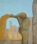 2005Fantasie met moeder aarde en een Maltezer bootje, een Luzus. De schelp en de krullen zijn veelgberuikte figuren in het Middellandse zee gebied.
